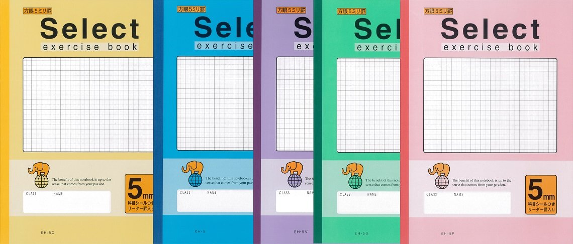 Bun un Hall learning book color 5 mm squares notebook five books pack cover cream Blue Violet Green Pink EH-5-5 (japan import)