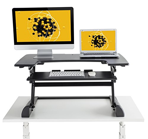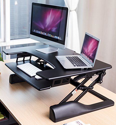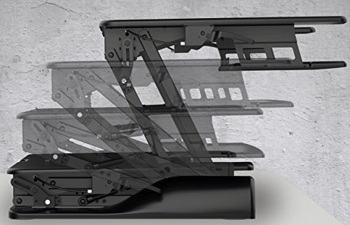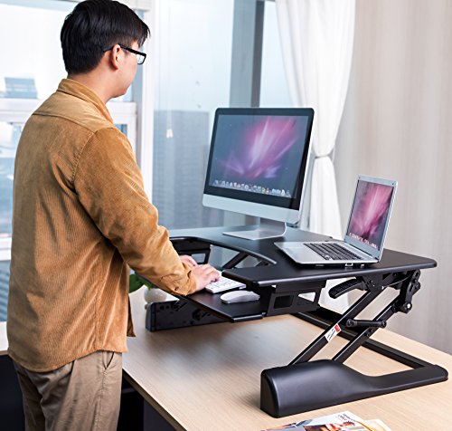 -. Binding : Office Product -. Brand : Husky Mounts -. EAN : 0646437731843 -. Feature : Gas sP.R.Ing technology allows for easy and quick desk height adjustment by squeezing the two handles on the sides. No pre-set incremental heights, you can set it at any desired height just by releasing the handles. Minimum height 5" and maximum desk height 20" from your current desk surface. / Pre-assembled ergonomic computer monitor riser desk. Ready to use right out of the box. Place the unit on your current desk; keep it flat if you like to sit down. Squeeze the handles on the sides and lightly pull up to raise your desk's height when you want to work standing up and use it as standup desk / Heavy-Duty construction sit/stand desk prevents shaking while raised. Smooth and stable movement up and down. / Smooth large 36" x 25" surface designed to hold two monitors or a monitor and a laptop. 27" x 12" ergonomic fixed keyboard tray for stability while typing as most sliding trays can be annoying when they slide and shake while typing. / Switch from sitting to standing up in seconds preventing stiff neck, back and shoulder. Burn more calories when standing up compare to sitting down due to involuntary muscles contraction while standing up. You will really appreciate the high quality of this unit. Please reach out to us if you have any questions at all. US based Husky Mounts customer service team is ready to help -. Label : Husky Mounts -. Manufacturer : Husky Mounts -. MPN : C-DSK1 -. PackageQuantity : 1 -. PartNumber : C-DSK1 -. ProductGroup : Office Product -. ProductTypeName : OFFICE_PRODUCTS -. Publisher : Husky Mounts -. Studio : Husky Mounts -. Title : Husky Mounts Pre-Assembled Sturdy Standing Desk Converter Sit Stand Height Adjustable Computer Desk 36”x 24” Dual Monitor Stand up Desk Elevating Heavy-Duty Monitor Riser Desktop -. UPC : 646437731843