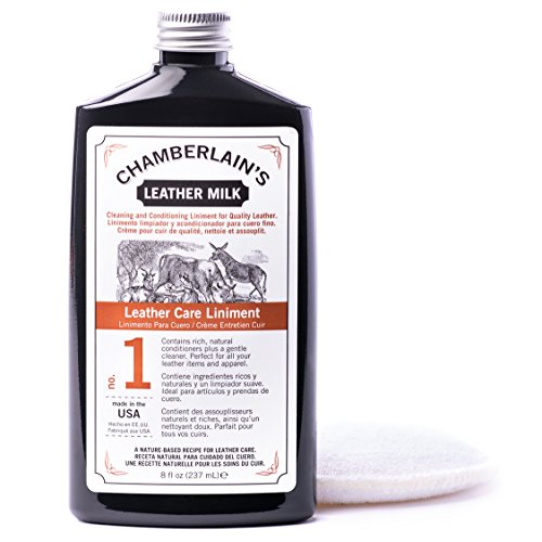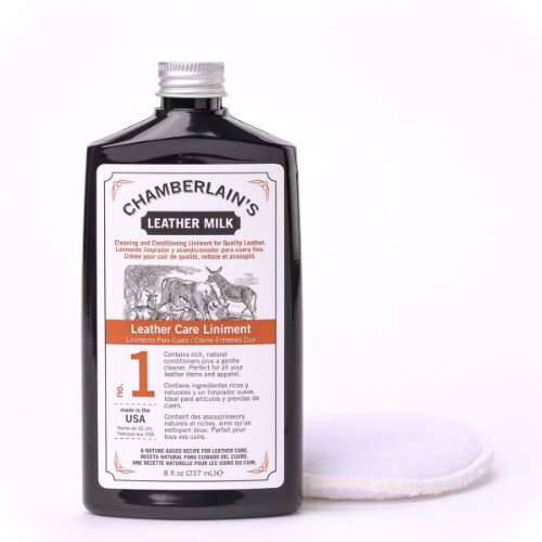 Just like milk is a primary nutrient for life, Leather Milk is a vital nutrient for your leather! Originally designed for and recommended by Saddleback Leather Company, Chamberlain's Leather Care Liniment is a milky, water-based leather conditioner containing some remarkable leather enriching ingredients along with a few mystical properties. Our all-natural recipes are designed to gently condition, clean, strengthen, preserve, and restore your leather without overloading it with heavy cream, honey oils or toxic chemicals. Distinguished by its pleasant fragrance (subtle enough not to detract from your leather's natural scent) Leather Care Liniment is also 100% Made in USA! Chamberlain's Leather Milk is used on all Saddleback Leather Company's products before the items are shipped to their customers.