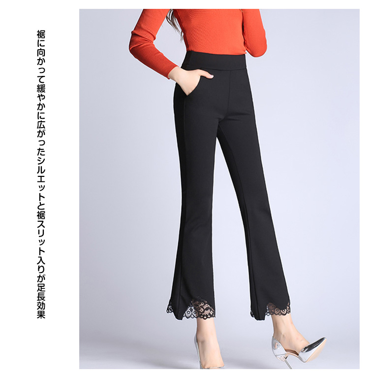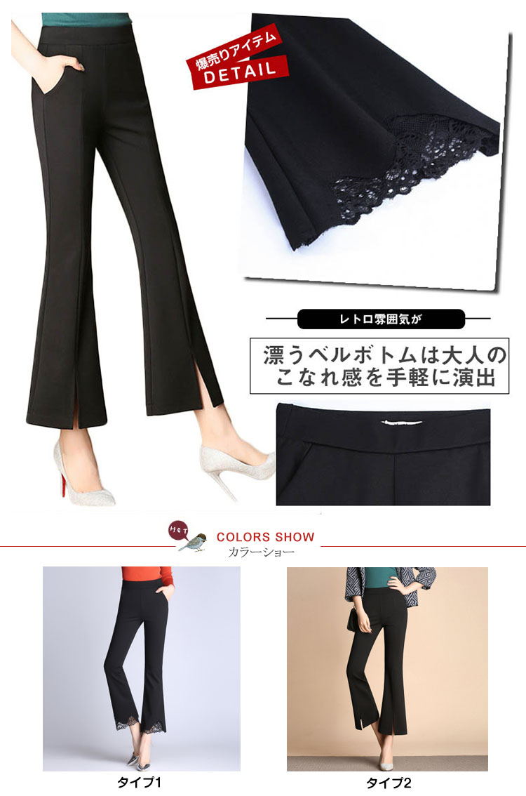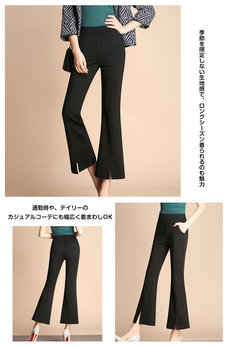 | レトロ雰囲気が漂うベルボトムは大人のこなれ感を手軽に演出裾に向かって緩やかに広がったシルエットと裾スリット入りが足長効果季節を限定しない生地感で、ロングシーズン着られるのも魅力通勤時や、デイリーのカジュアルコーデにも幅広く着まわしOK | |