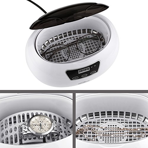 600ml Tank Capacity & Strong Power for Cleaning: This digital ultrasonic jewelry cleaner generates 42,000 Hz of ultrasonic sound waves for a powerful yet gentle clean that won't harm your valuables. Millions of the little bubbles reach into intricate spaces, making the process an effective cleansing tool for some jewelry and its components. Moreover, large enough (600ml capacity) to clean eyeglasses and other small items. Easy to operate including watch basket to keep your items securely