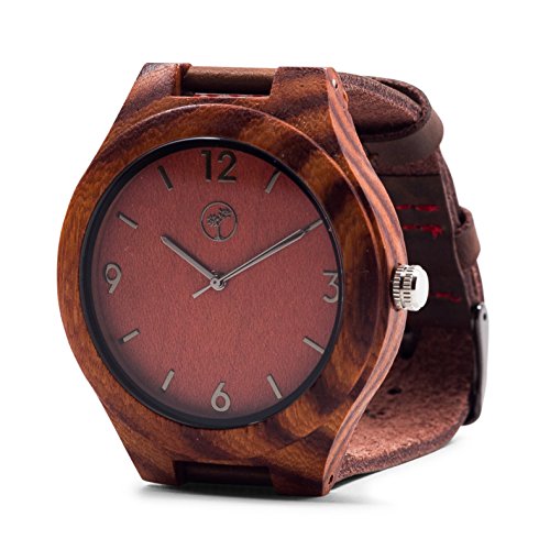-. Title : Men's Wooden Watch by Tree People: Sandalwood, Genuine Leather Watch Strap, Miyota Quartz Movement