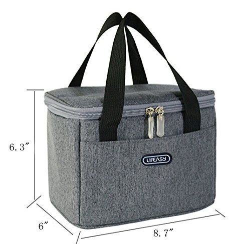 Lunch Bag - Lifeasy Polyester Insulated/Cooler Lunch Bag with 2 Way Zipper Closures