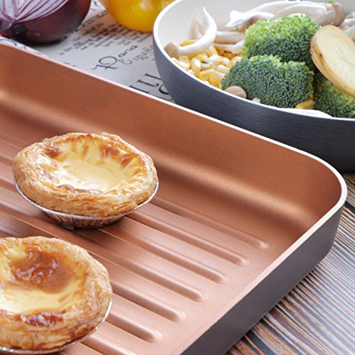 This 10 x 10 inches nonstick copper ceramic deep square grill pan ensures you 100% safe and healthy cooking as PFOA/Lead/Cadmium free. Enjoy perfect chargrilled foods from now on!