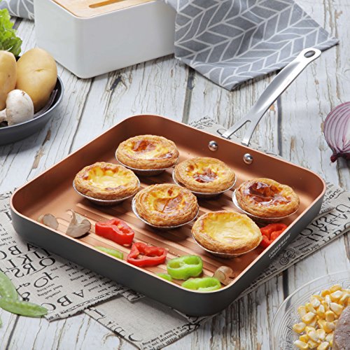 Cooksmark 10 Inches Nonstick Copper Ceramic Square Grill Pan , we satisfy you with: