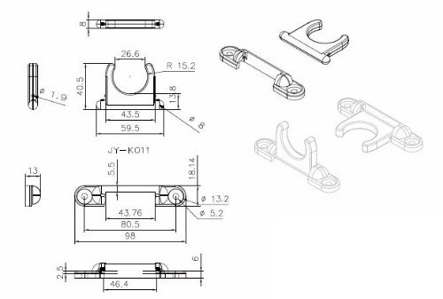 H2o Universal Fold Down Paddle Clips Inc Fixings 1-1/4" INC FIXINGS