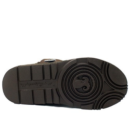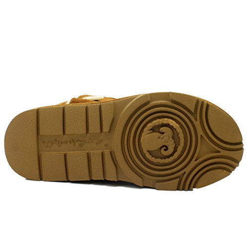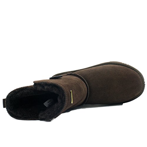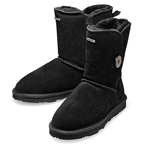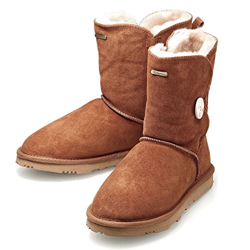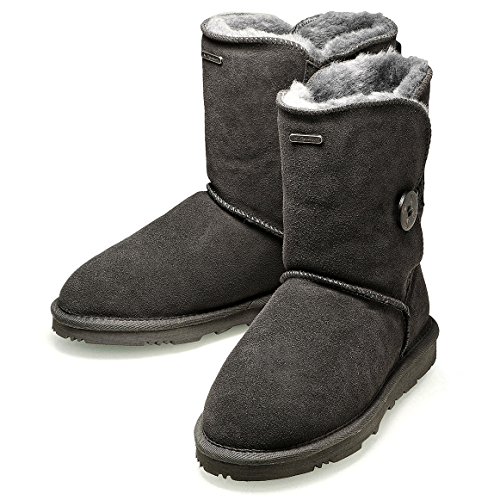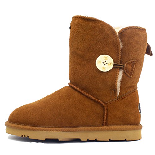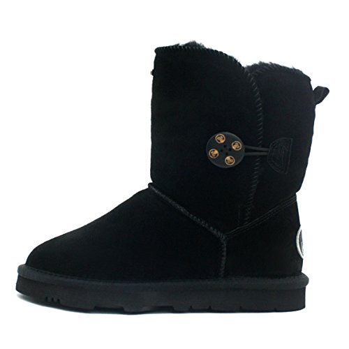 Product Description KOS Signature's SUMMER sheepskin one button boot is built for ultimate comfort and chic.Genuine suede leather upper.Fully lined in luxurious, genuine sheepskin wool-blend, Generously cushioned footbed is lined in Australian shearling.The top of front shaft with metal brand name plague detail. The molded rubber outsole is very light,flexible and durable. 0