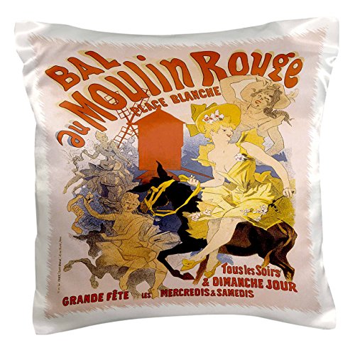 3dRose Vintage Bal au Moulin Rouge French Advertising Poster - Pillow Case, 16 by 16-inch (pc_149341_1)