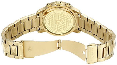 -. Feature : 23K yellow gold layered round shaped case with Swarovski crystal studded bezel / Protective Krysterna crystal on front and decorated case back / Gold dial with day, date and 24 hour counter sub dials with applied Arabic numerals and markers / 23K yellow gold layered triple row link bracelet with double push button clasp / Water resistant to 165 feet (50 M): suitable for swimming and showering