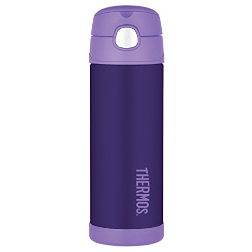 Constructed with double wall stainless steel, this 16 ounce straw bottle is virtually unbreakable and built to withstand the demands of everyday use. Featuring a hygienic, push-button lid, this straw bottle is easy to open and drink from. Also included on the lid is an integrated, flip-up carrying loop. The THERMOS FUNtainer Straw Bottle comes equipped with a breakaway lid designed to simply snap off if accidentally dropped while the lid is open. The lid can then be easily snapped back into place, making this a great, worry-free choice for parents and kids alike. In order to maximize the incredible insulation technology, it is recommended to pre-chill the bottle just prior to use. This can be accomplished by filling the bottle with cold tap water, attaching the lid and letting it rest for a few minutes. Before you are ready to use, simply empty the water and fill with your favorite beverage. Attaching the lid will further increase the thermal efficiency.