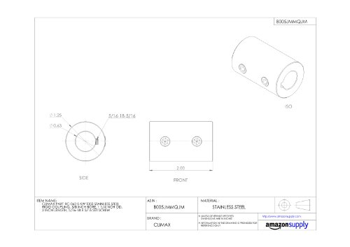 Climax Part RC-062-S-KW T303 Stainless Steel Rigid Coupling, 5/8 inch bore, 1 1/4 inch OD, 2 inch length, 5/16-18 x 5/16 Set Screw