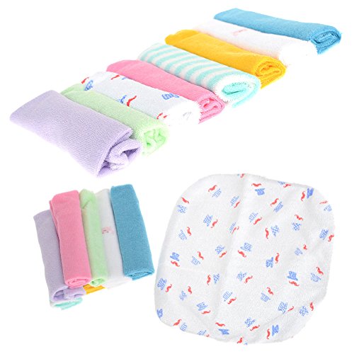 Cren 8pcs Newborn Baby Soft Cotton Bath Towels Handkerchiefs Bandana Drool Bibs Washcloth Bathing Feeding Wipe Cloth, 22cm×22cm/8.66inch8.66inch