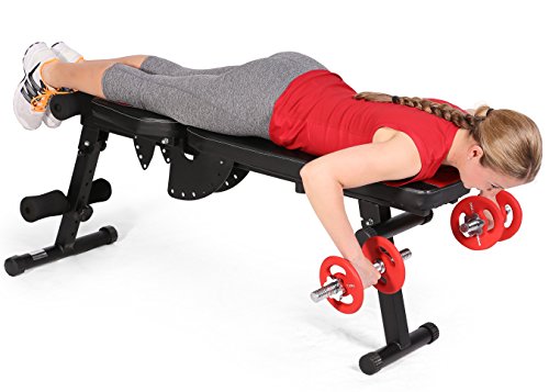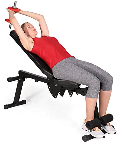 -. Feature : Vielseitig einsetzbare Trainingsbank für effektives Kurzhanteltraining / Individuell verstellbare Fuß-, Rücken-, und Sitzpolster / Ideal zur gezielten Stärkung der Oberkörpermuskulatur auf der Flach- bzw. Schrägbank / Platzsparend zusammenlegbar / Einklappbarer Stellfuß für die Nutzung als Negativ-Bank