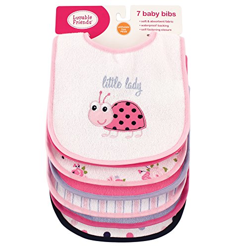 Luvable Friends 7 Piece Drooler Bibs with Waterproof Backing, Ladybug