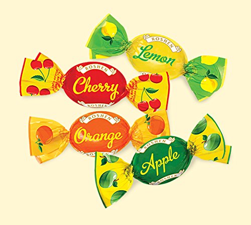 -. Feature : Roshen Assorted Fruit Hard Candy Mix / Hard candies made with natural juices. / Assorted Flavors include: cherry, orange, lemon, apple. / 2.2 lbs/ 1 Kg bulk bag