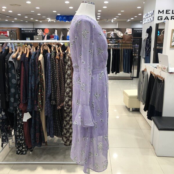 연한 바이올렛 컬러의 플라워 원피스입니다. 독특하고 예쁜 컬러로 나온 제품입니다. V넥으로 성숙한 느낌도 연출할 수 있으며 스커트 밑단과 손목의 셔링 부분이 시스루로 되어있어 포인트를 주며 허리끈으로 라인을 잡아주기 때문에 더욱 날씬해 보이는 효과를 줄 수 있습니다.** 저희 멜로디가든매장은 상품이 매장에서 같이 판매가 이루어지기때문에 매장에서 선판매시 배송으로 받아보시는 기간이 5~7일 소요가 됩니다. 이점 양해부탁드립니다^^ 감사합니다♡**