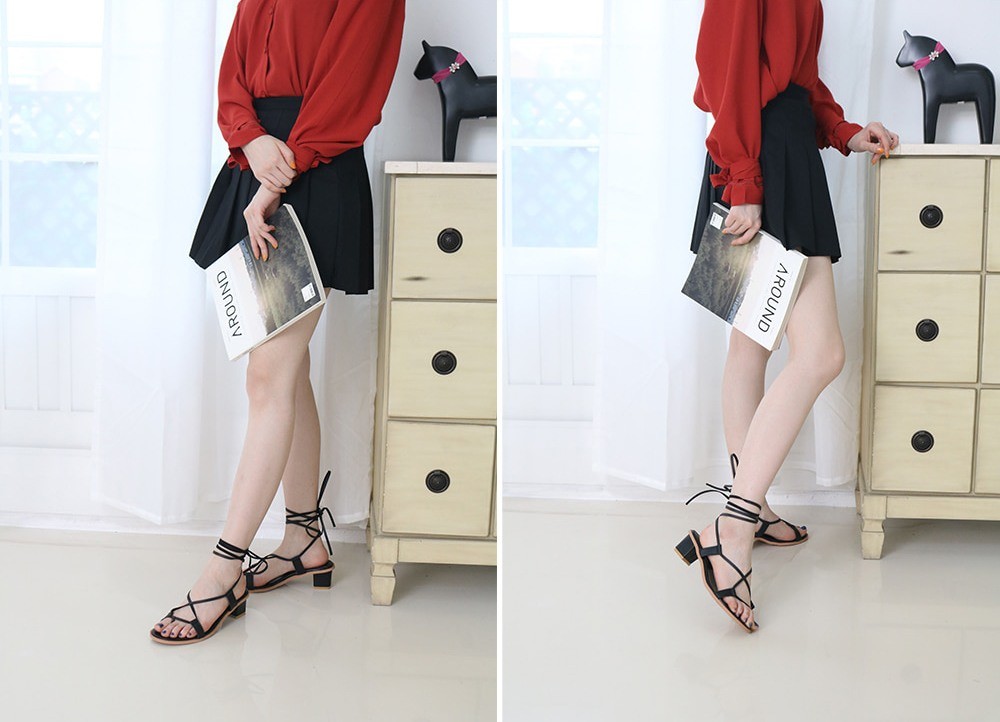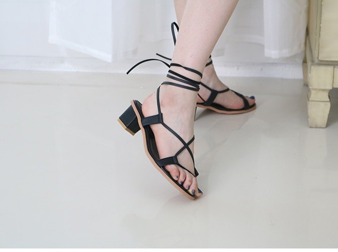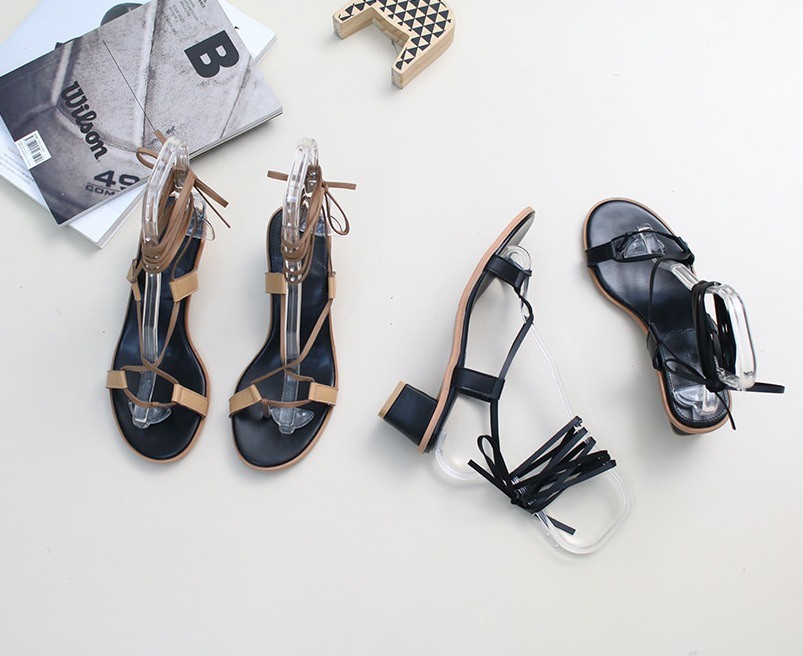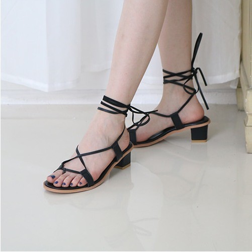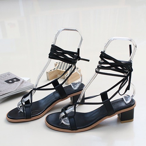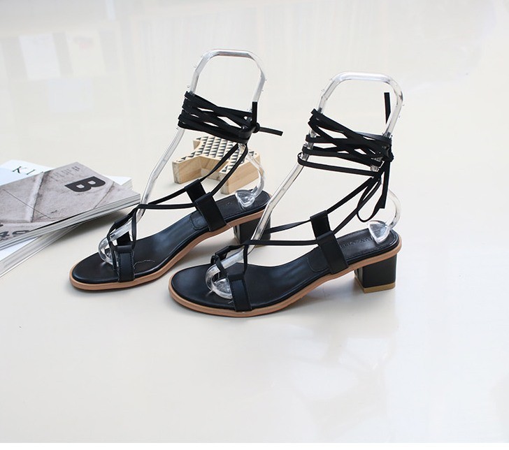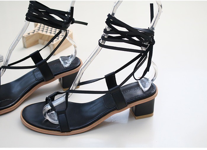 商品名:サンダル レディース レースアップ 太ヒール チャンキーヒール 2018 夏 ファッション 靴 婦人靴