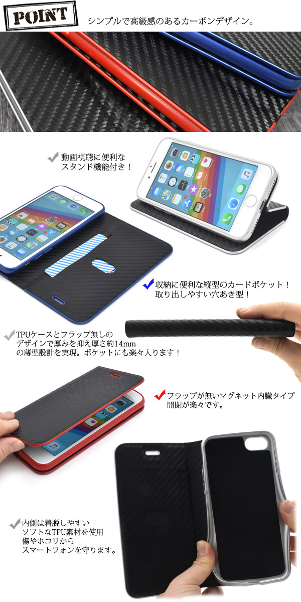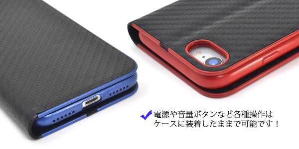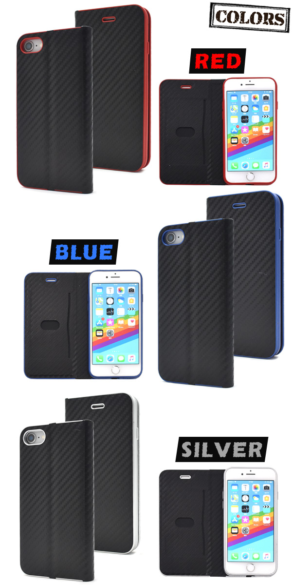 iPhone 7/iPhone 8用カーボンデザインメタリックライン手帳型ケース