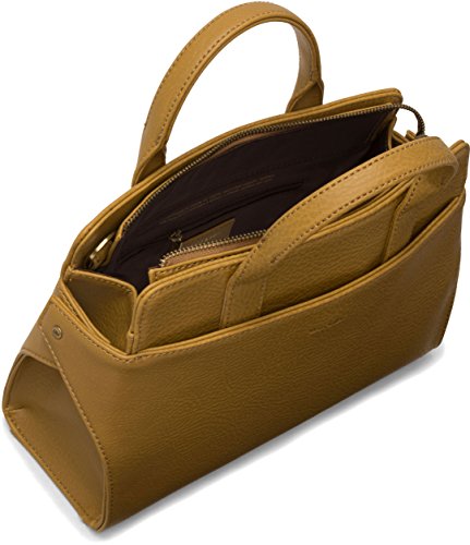 Small satchel with adjustable and removable crossbody strap. Top zipper closure. Large pocket along front with hidden magnetic closure. INTERIOR: zipper pocket, smartphone pocket, logoembossed Dwell tag. 100% recycled nylon lining.