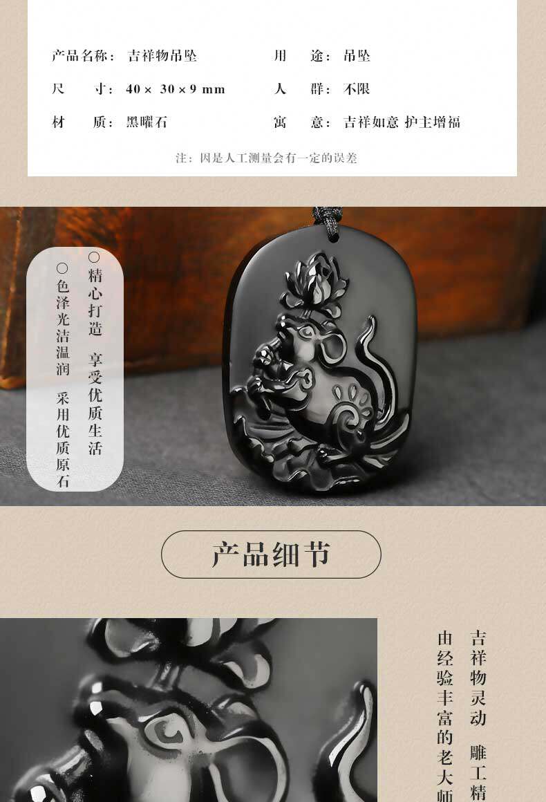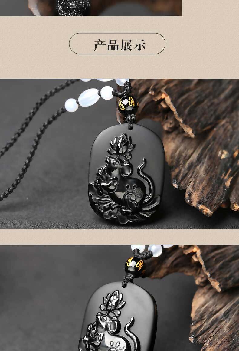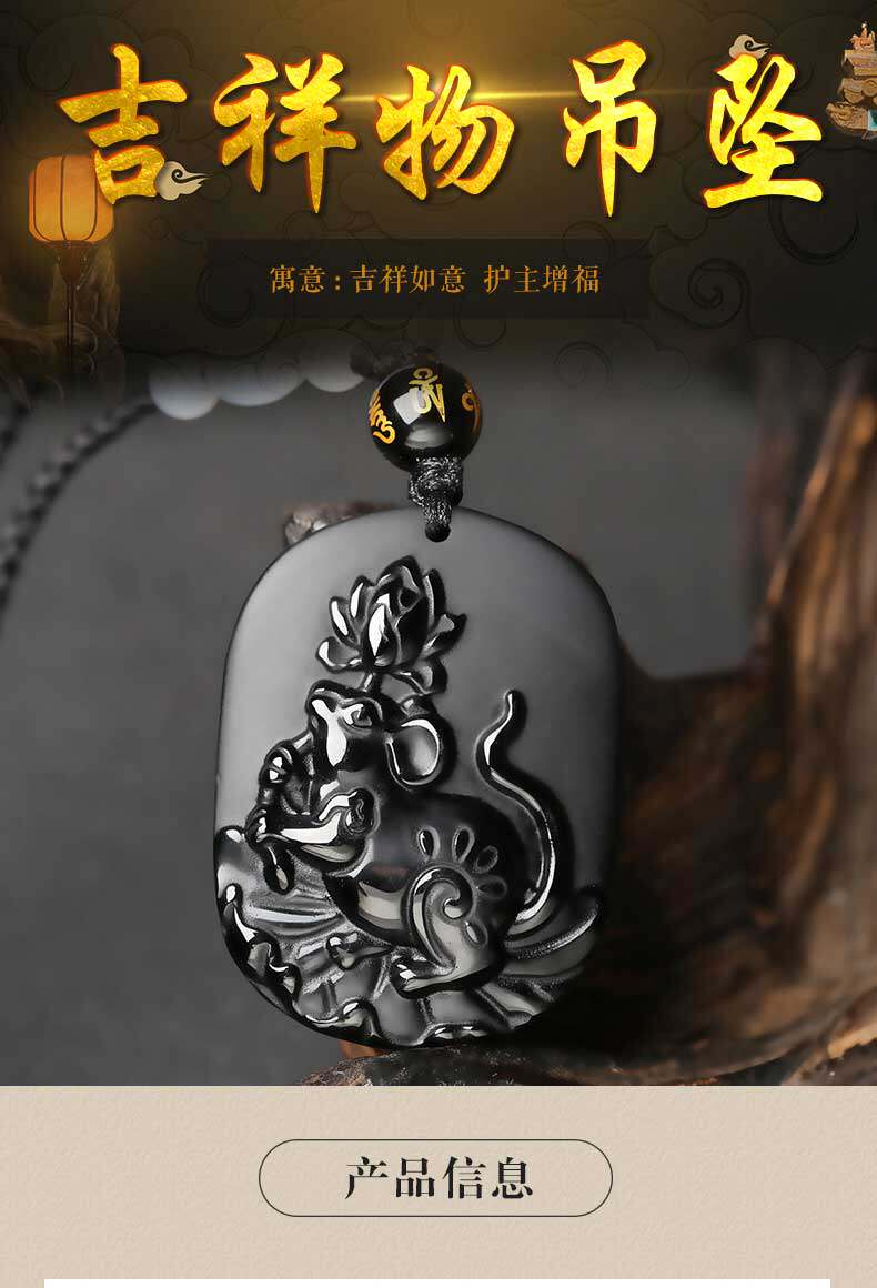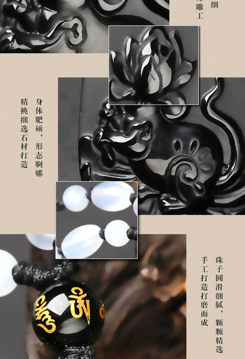 开光12生肖吉祥物属猴莲子送瑞吊坠黑曜石项坠男女款项链