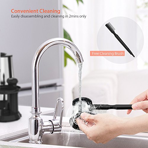 4.✔ Easy to use - One touch release button to reset the juicing part. With the included cleaning brush, and the removable parts are available for dishwasher. Easily disassembling and cleaning in 2mins only! Includes a reversing function to avoid clogging and keep the juicer running at all times. Less than 60 decibels top quality motor, you can safely use it in any time and any place.