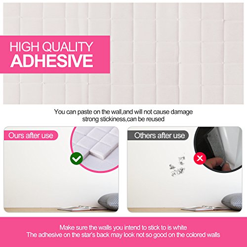 Maypal Glow In The Dark Stars made with IllumaGlow2.0 -The Advanced Luminescent Formula to give you a Lifetime Glow Guarantee . The variety of stars sizes and one bonus Moon will give your child a full, realistic starry sky! Enjoy this amazing feeling of lying under the stars! Multi-purpose: *Create as intimate setting for a romantic evening *Turn your children's bedroom into a galaxy full of stars *Soothe children and help them fall asleep peacefully *Tell them bedtime stories under a sky full of stars *Throw a sci-fi themed party your little one will love *Encourage kids to imagine and create as they explore the world around them Why choose us? *Easy To Apply *Realistic and bright *Easy to charge naturally *Lifetime Glow Guarantee *No Mark Left On the Wall Tips: Expose the stars to bright light is KEY to getting the maximum glow from your stars. Your satisfaction is guaranteed, So What Are You Waiting For? Hurry now and get yours!