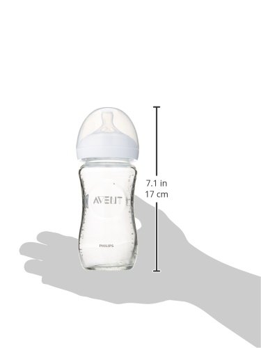 Philips AVENT SCF673/17 Natural 8 Ounce Glass Bottle is the most natural way to bottle feed. The wide, breast-shaped nipple promotes natural latch-on so you can easily combine breastfeeding and bottle feeding, and the unique comfort petals provide an extra soft, flexible nipple without nipple collapse. In addition, the anti-colic newborn-flow nipple releases air back into the bottle rather than into your baby's tummy to help newborns feed comfortably and easily. The ergonomic shape makes it comfortable for parents to hold and easy for small fingers to grasp. Assembly is simple, with only a few parts, and the wide bottle neck makes filling and cleaning easy. This Natural Philips AVENT bottle is made of premium quality borosilicate glass, a BPA free material, and is printed using organic ink and made from only virgin raw materials, to ensure the highest quality for ultimate purity. It is heat and thermal shock resistant, so it can be safely stored in the fridge, warmed and is easy to wash and sterilize. Works with all nipples and caps from the Natural line.Feature