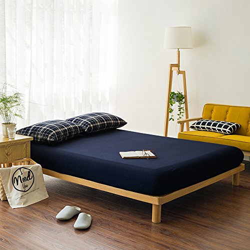 Flannel Fitted Sheet Queen Solid Blue 100 Yarn Dyed Cotton Deep Pocket for Full Bed Cover Comfort Wrinkle-Free All Around Elastic Bedding Sheet By HighBuy (Blue,Queen)