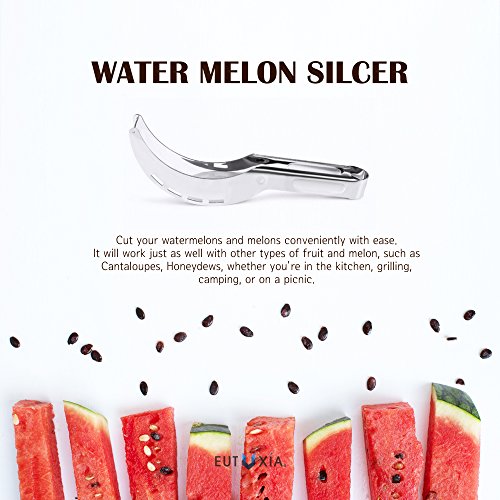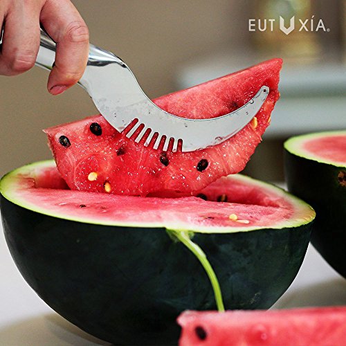 Studio : REDshield Publisher : REDshield Product Description Watermelon Slicer, No Mess, No Stress, Neat And Easy With Juicy Slices Of Melon, Fruit Slicer Multi-Purpose Stainless Steel, Smart Kitchen Gadget, Dishwasher Safe Kitchen Tool. This innovative tool to cut and serve the watermelon in a quick and clean way, to serve perfect slices of watermelon pulp only without ever having to touch it with bare hands. 0