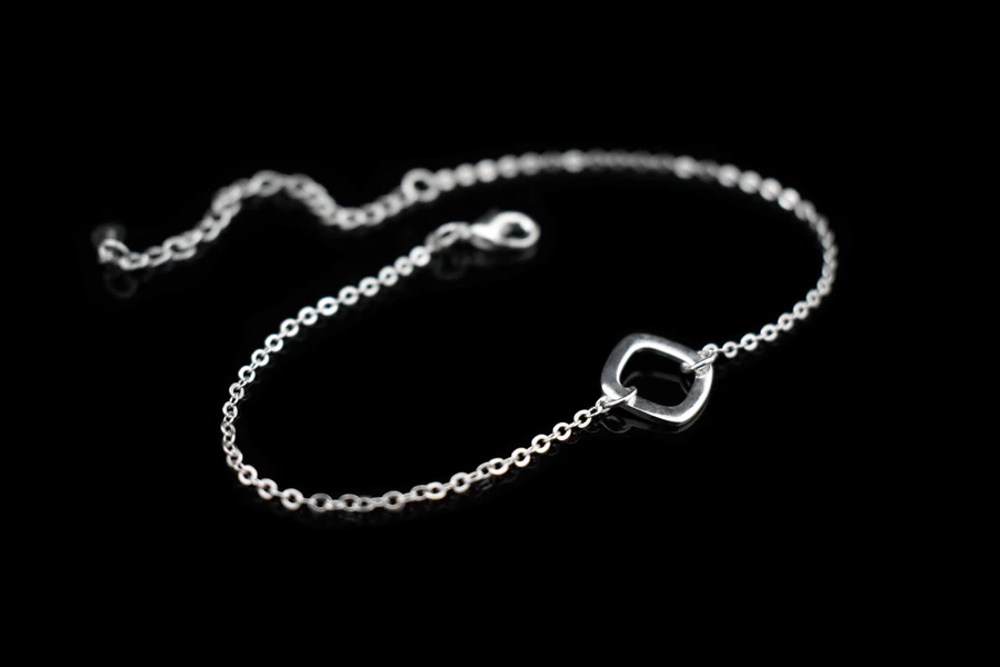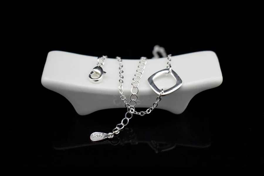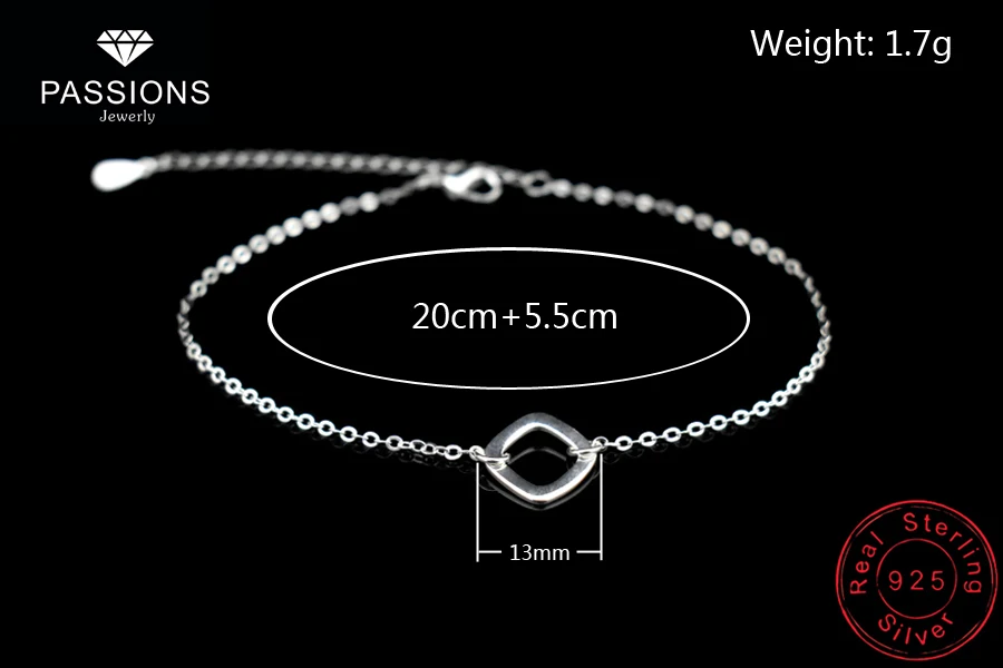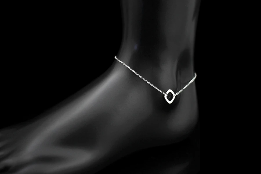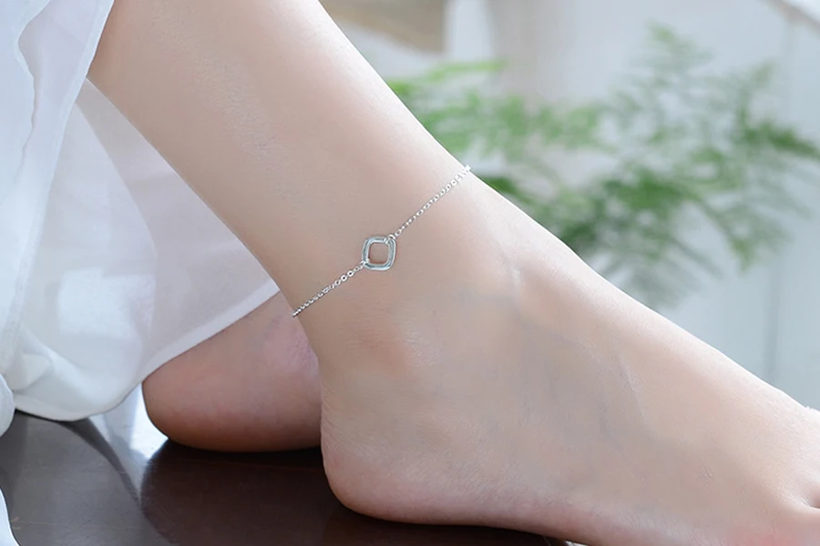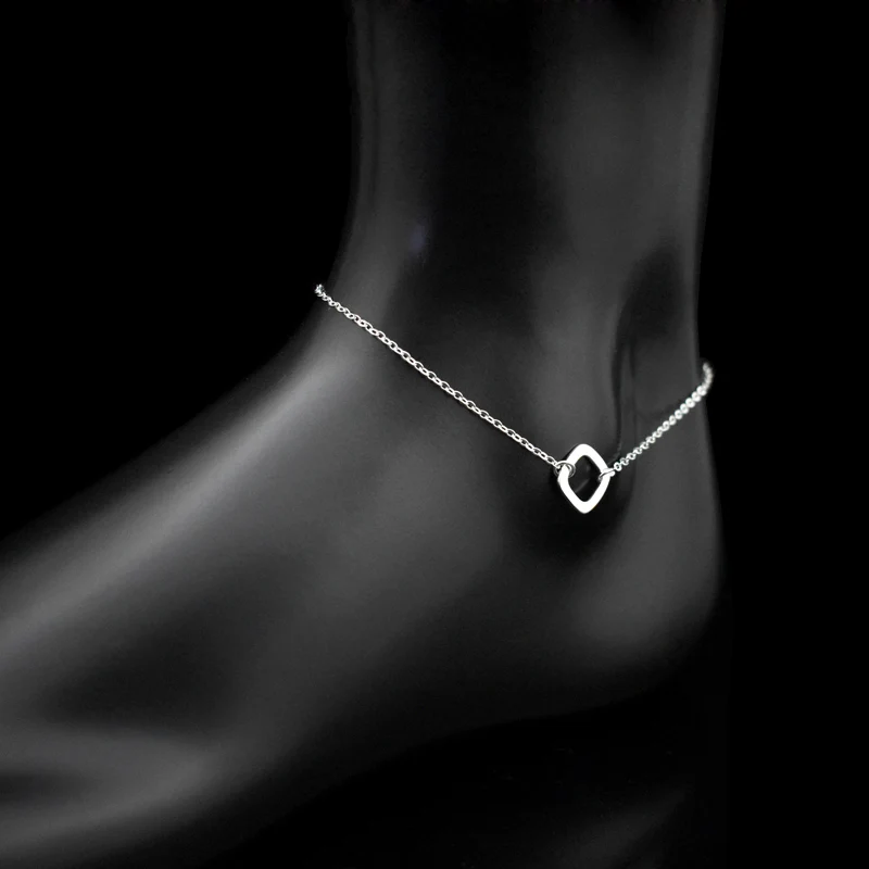 Type:925 Sterling Silver Square Pendant Anklets Foot Chain