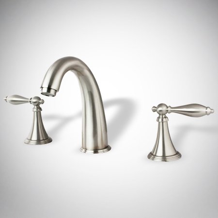 -. Feature : Solid brass construction / Finish: Brushed Nickel / 8" Widespread 3-hole mount / Dual-handle control / Drip-free ceramic disc cartridge
