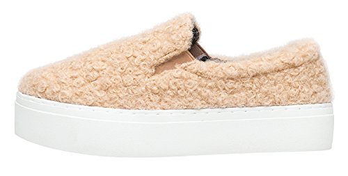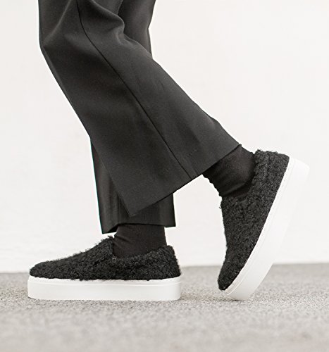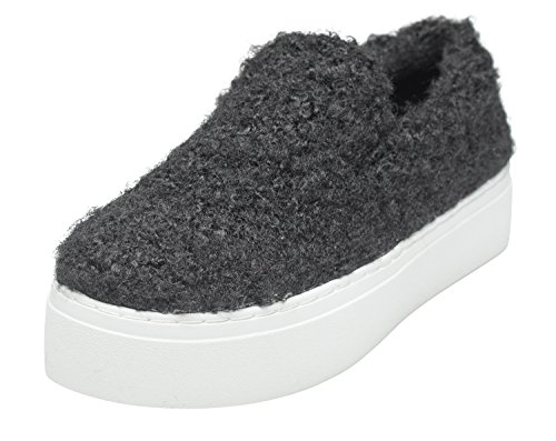 (AnnaKastle)/Women's/Loafers Slip-Ons/DIRECT FROM USA/AnnaKastle Womens Furry Faux Shearling Platform Slip On Sneaker Skate Shoes