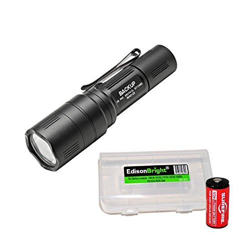 SureFire EB1 Backup Dual output LED 300 Lumens compact Tactical Flashlight, Black w/ 2 X SureFire CR123A batteries and EdisonBright BBX3 battery carry case bundle