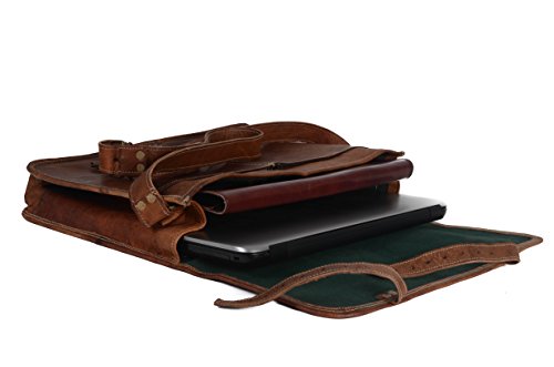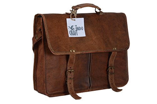 -. Binding : Office Product -. Brand : INDO CRAFT -. Color : NATURAL BROWN -. EAN : 0630299112834 -. Feature : 100% genuine leather, Handmade, Naturally Processed Leather Which Is Chemical Less, Non-Allergic and Eco Friendly / Brass/ Metal Fitting Buckles and Holders and Internally Lined with Strong Green Canvas Make it Durable and Long Lasting / Vintage Leather Bag. It Is Handcrafted Using Pure 100% Genuine Goat Leather. / Dimension - (WxHxD) - 16x12x5 inches / 2 Front Pocket, 3 Inner compartments, 2 Zipper Pockets, Long and adjustable Shoulder Straps -. Label : INDO CRAFT -. Manufacturer : INDO CRAFT -. PackageQuantity : 1 -. ProductGroup : PC Accessory -. ProductTypeName : OFFICE_PRODUCTS -. Publisher : INDO CRAFT -. Studio : INDO CRAFT -. Title : INDO CRAFT 16" Twin Pocket Leather Messenger Bag Business Bag Briefcase Laptop Case -. UPC : 630299112834