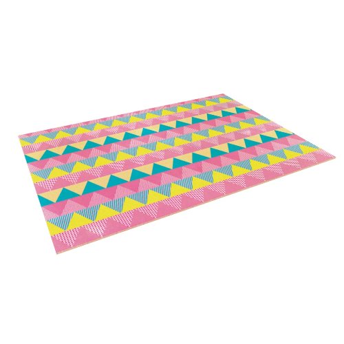 Kess InHouse Louise Machado "Triangles" Yellow Pink Indoor/Outdoor Floor Mat, 4-Feet by 5-Feet