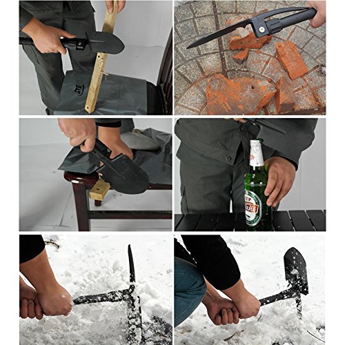 Not just a shovel, this is a multifunction tool including a shovel, pick, saw edge, bottle opener, nail puller and compass.