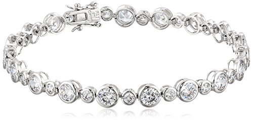 -. Feature : 11.75 cttw Equivalent Diamond Weight / Classic sterling silver tennis bracelet featuring bezel-set cubic zirconia rounds in alternating sizes / 8.25" length featuring box clasp with tongue and safety / Imported / P.R.IME MEMBER EXCLUSIVE OFFER: FREE 1 cttw Swarovski Zirconia Studs with qualifying $30 purchase; see link for details: https://www.amazon.com/b?node=14702600011 / To redeem the promotion, add this item to your cart along with $30 of qualifying merchandise, then proceed to checkout: http://www.amazon.com/dp/B00FXW6LTO
