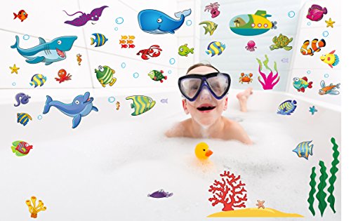 -. Feature : ✔ MULTIPLE PRECUT SEA CREATURES - Get 4 (18.7 x 10.8 Inches) sheets of different ocean animals of various shapes, color and sizes. Obtain realistic large sharks, small starfishes, whales, dolphins, corals, seaweeds,stingrays, fishes of bright attractive colors, bubbles and even waves. Your kids will definitely learn about crabs, lobsters, octopus, turtles, eels, seahorses and so much more. It's educational, decorative and entertaining self adhesive decal! / ✔ HIGH QUALITY AND SAFETY CERTIFIED- These stickers have passed the ASTM F963 International Safety standard. Best waterproof and moisture resistant ocean theme decor kit and clings to places with water and underwater . Doesn't easily detach or come off of any surface even when it's adhered to showers or baths. Also does not easily melt or catch on fire. It's environmentally friendly and baby safe. Vinyl stickers are nontoxic and odorless and still very cute and colorful. / ✔ BEST GIFT FOR BOYS AND GIRLS - It's unisex and can be applied on a girl or boy's bathroom and bedroom even babies' nursery. Ideal gift for a new mom and soon to be mommies, for baby showers or just on birthdays. Introduce love of the beach, nature and wildlife to kids on Halloween, Christmas or any other holidays. Need ocean motifs for a party? This 4 pack set is the best for you. You can have a great bonding moment or you can have your smart kids to decorate on their own. / ✔ DECORATE AND DIY CHILDREN'S ROOMS - These multicolored tropical fish and coral reef decoration stickers can make a child's room, classroom or any other place more happy, pretty, bright and fun. Create a personalized and unique home for your children and your family. What are you waiting for? Add to cart now! / ✔ APPLIES AND REMOVES EASILY - Peel these nautical sticker decals from the backing and stick on any dry, smooth, clean and hard surfaces such as: mirrors, windows, walls, metal, glass, tiles, wood, brick, concrete, ceramic, canvas, fabric, paper, plastic and more. Make your living room, kitchen, classrooms, closet, bathtub, children's tables and desks, even ceilings lively and enjoyable for your little ones. Easily repositionable, removable and reusable when you transfer rooms or redecorate.