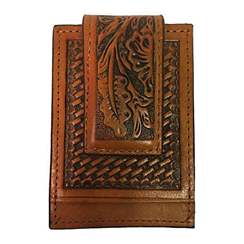 Twisted X Brand Vine Basket Pattern Tan Leather Money Clip Plenty of Card Slots for Storage Magnetic Money Clip Model: MC-06 0