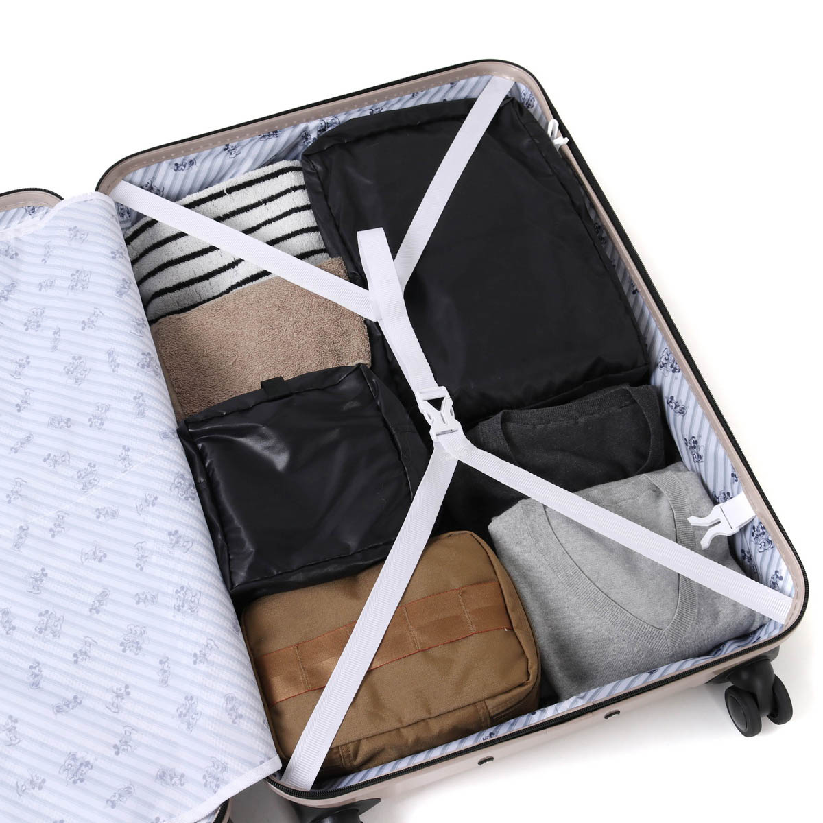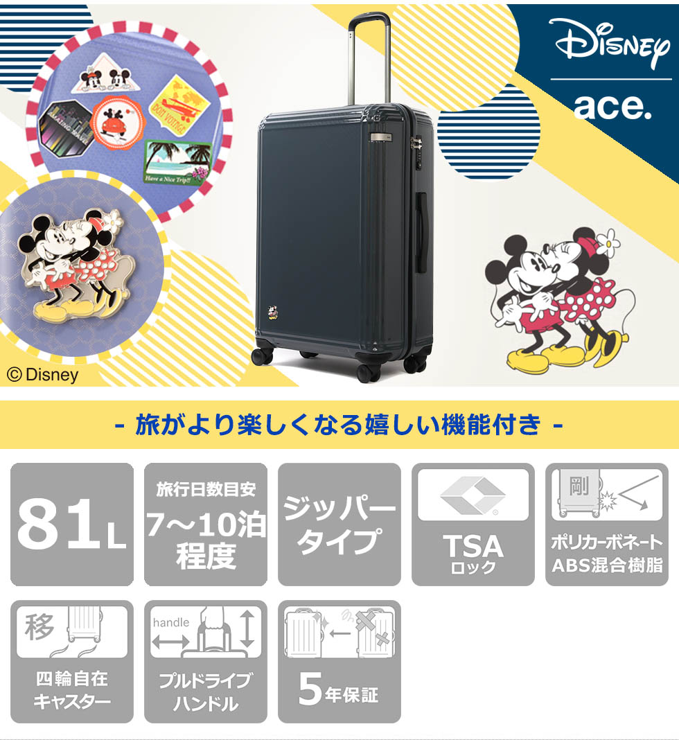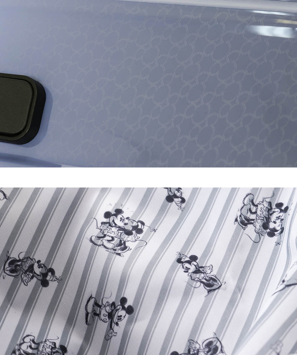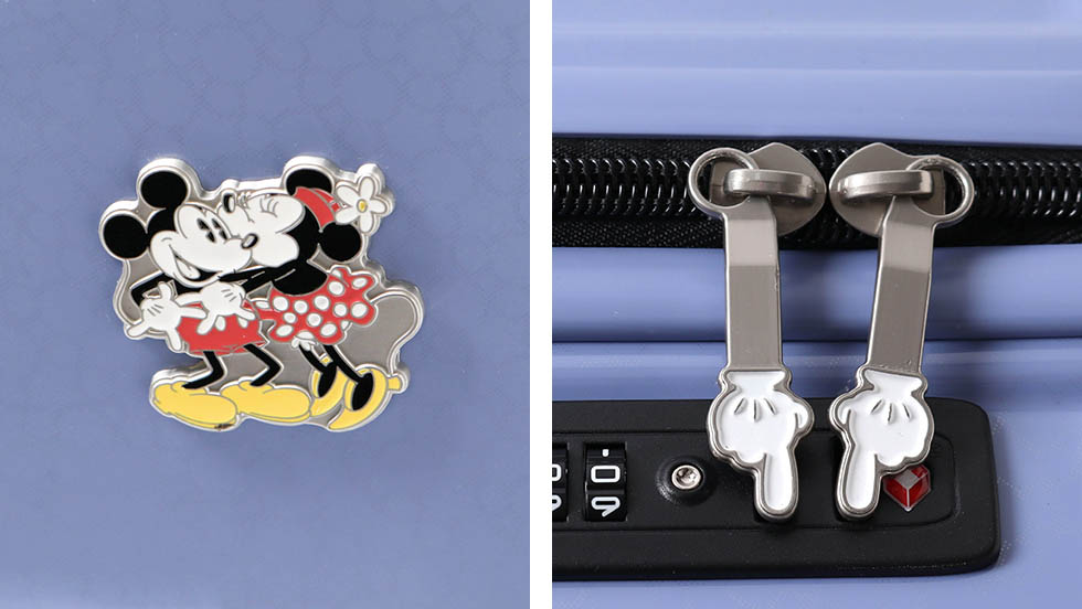 Micky & Minnie 's emblem is full of excitement before traveling, accented with chic colors that you can use for a wide range of people. TSA lock pull tab part is a fun motif of Mickey Mouse, it is a fun design like Mickey closes us.