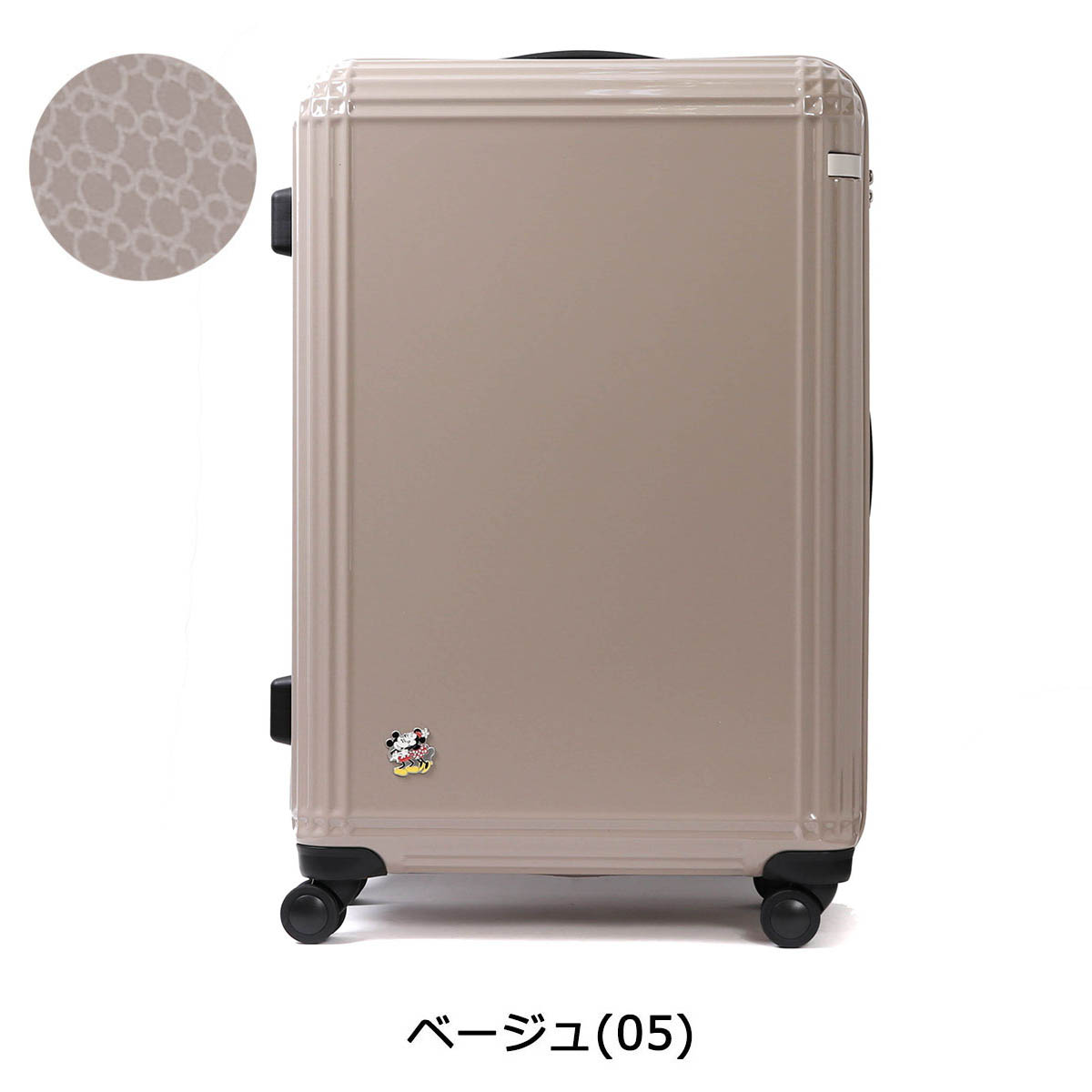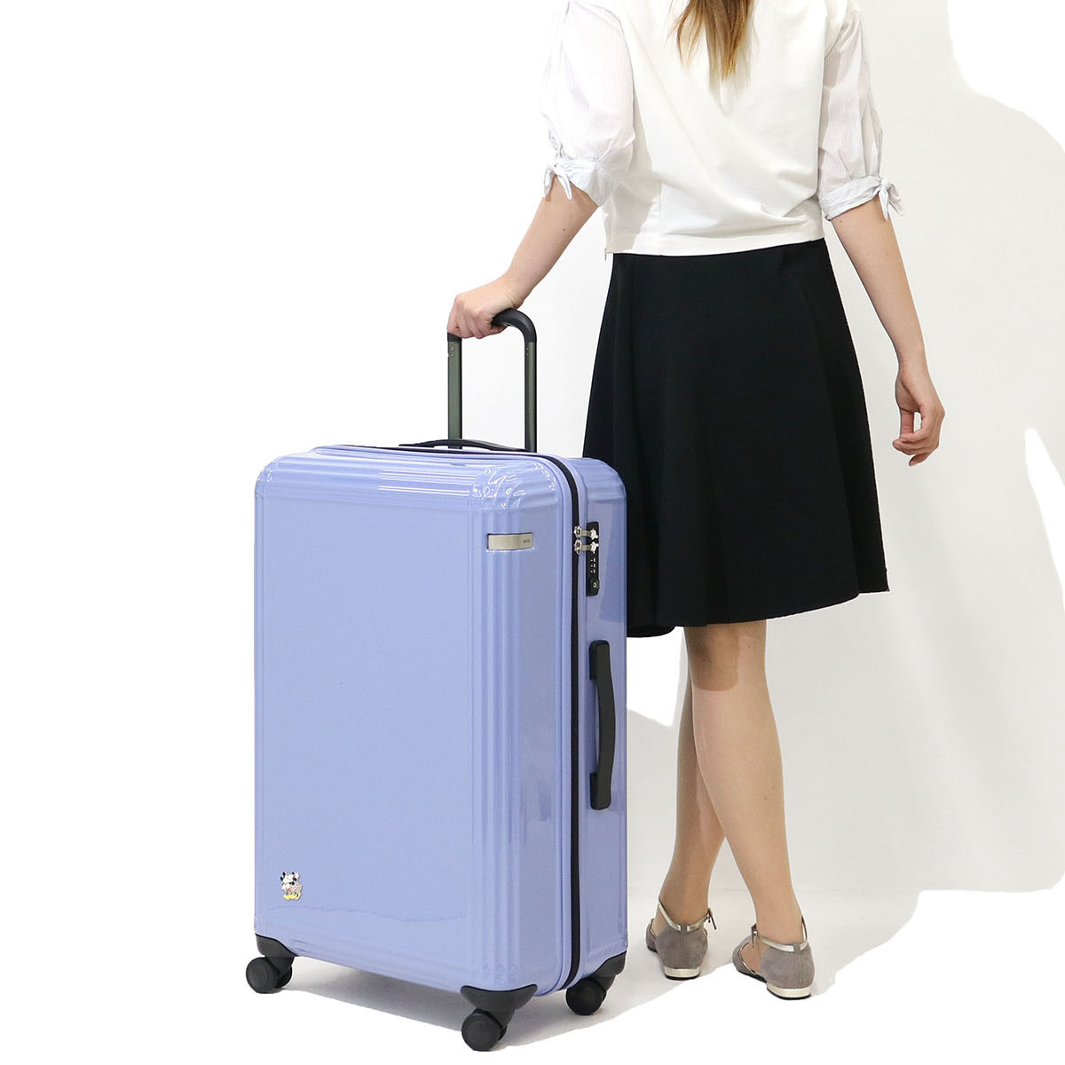 A suitcase that imaged the appearance of Lunulun where Mickey and Minnie go out to a vacation. There is a comprehensive storage capacity of 81L, it is a size feeling convenient for traveling abroad. You can customize it for your own design with the included sticker.