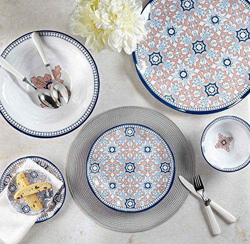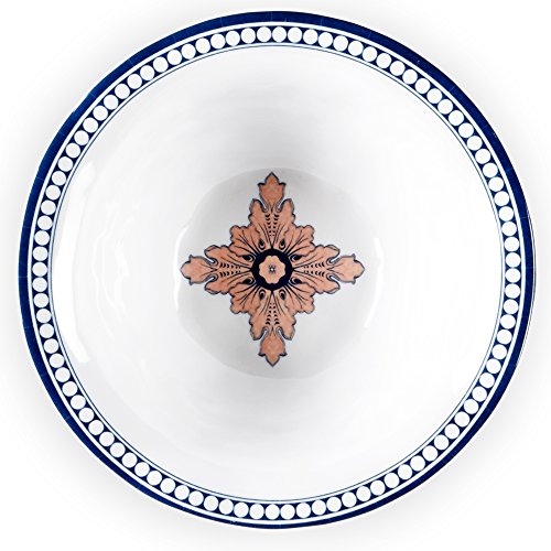 Q Squared Palazzo Melamine Cereal Bowl, 6-1/2-Inches, Set of 4, Blue and Salmon Pink