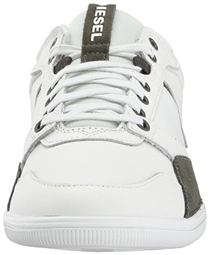 Product DescriptionDiesel Happy Hours S-Tage low top athleisure style sneaker with interesting upper details in leather and suede, V Diesel logo, and customized outsole.0