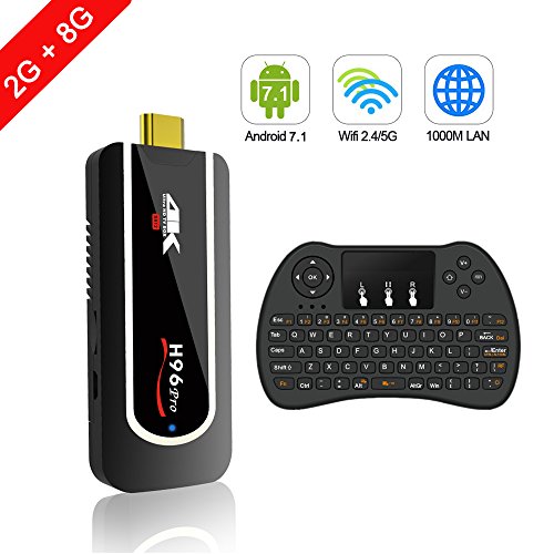 -. Feature : Wireless keyboard: Comes with the H9 wireless keyboard, more convenient. Can not ignore the mini USB size, this H96 Pro Android TV stick will bring you more surprise. Smooth and stable 4K Ultra HD watching experience is allowed / Android TV Stick : This micro-computer will turn the old TV into a smart Android 7.1 based TV that can download what you choose, experience more entertainment just like your Android phone does / The Config : 8 GB of storage and 2GB of memory, a octa-core processor, a wireless keyboard, plus 2.4GHz Wi-Fi, do not forget the up to 32G expanded TFCard ,Easily find what you want to watch / Powerful chipset is the most real driving force, the Octa core Amlogic S912 CPU can give you more, over 4 times the functional experience, the speed is enough to run the video / Plug and play is so easy and convenient: Carry the mini PC in your bag when you are traveling since it's so small size, plug it to any TV's HDMI port, connect to internet, continue to enjoy your favorate TV shows and movies