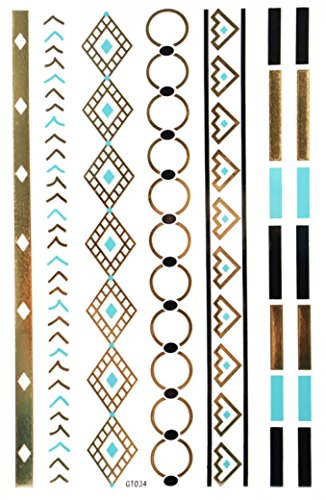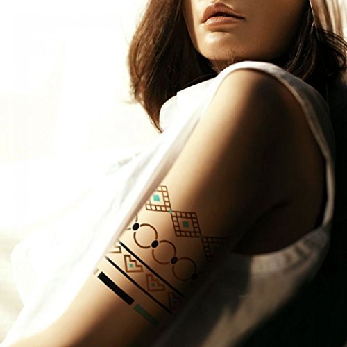 -. Feature : Gold, Silver and Black Flash Inspired Metallic Jewel Tempoary Tattoos / Dimension of each sheet - 8.27" x 5.51" / Trendy! Fun! The Hottest Current Runway Fashion! / Even wear them with Jewelry, Jewel Tattoos will compliment any jewelry / Extremely easy to apply and remove. Jewel Tattoos are NON-TOXIC and safe for anyone to wear