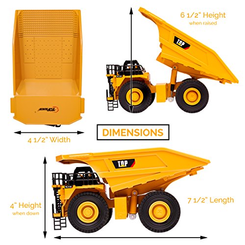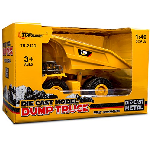 Top Race Metal Diecast Dump Truck Construction Toy Truck, Heavy Metal Mine Truck Model 1:40 Scale - TR 212D The Fully Functional Top Race metal die-cast heavy duty dump truck is made of high quality metal, Alloy and rubber tires to imitate the looks of a real dump truck or mine truck tractor with all the detailed features.