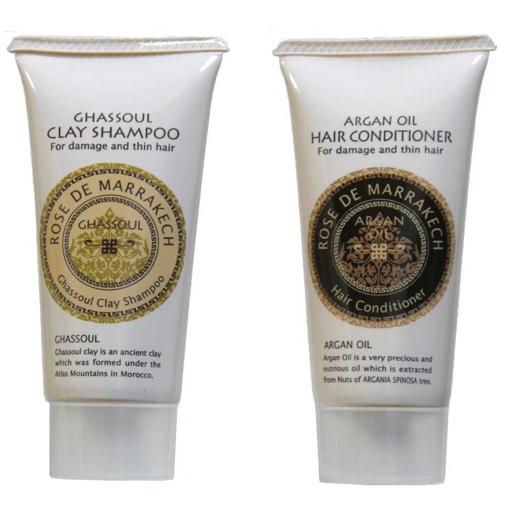 A set of mini size clay shampoo and hair conditioner popular in Rose de Marrakesh.