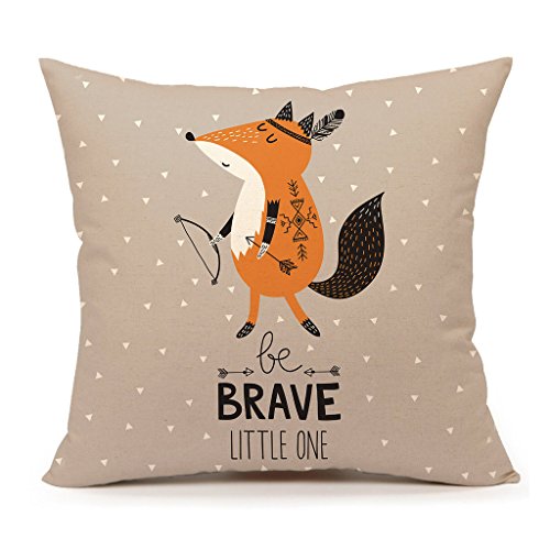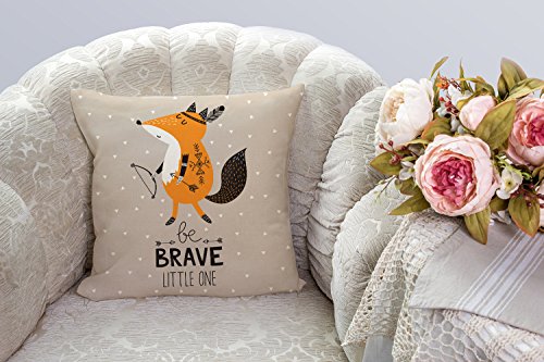Cute Indian Fox Throw Pillow Cover Inspirational Quote Cushion Case 18 x 18 Inch Cotton Linen Children's Birthday Gift(Be Brave Little One)