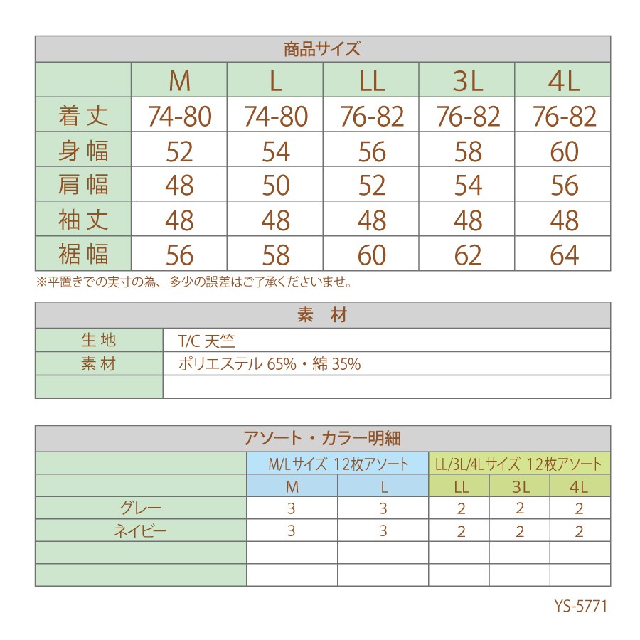 Mサイズ Lサイズ LLサイズ 3Lサイズ 4Lサイズ |