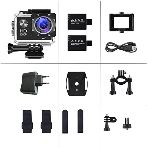【Long Battery Life and Multiple mounting accessory kits】 Two upgraded rechargeable batteries, double recording time and double fun. We now provide multiple accessories allowing your camera to be even more versatile. We want you to maximize your usage so we provide you with all the extras rather than buying them separately; you can now enjoy our 1080P Ultra HD action camera in a variety.